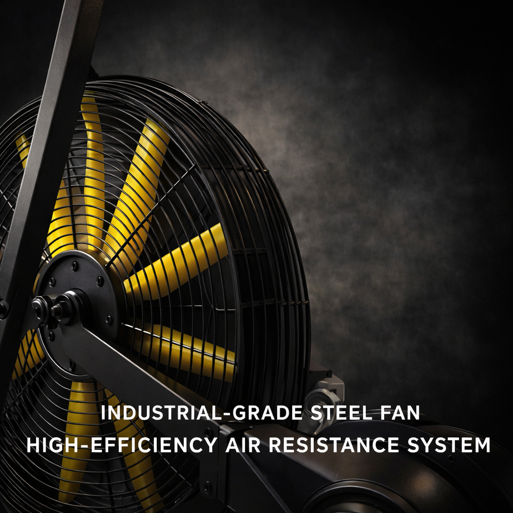 Profesionalni Air Bike za HIIT i kardio trening. Stabilna konstrukcija od 54 kg, bešumni kaišni prenos i LCD ekran sa 7 programa treninga. Idealno za intenzivnu i dugoročnu upotrebu.