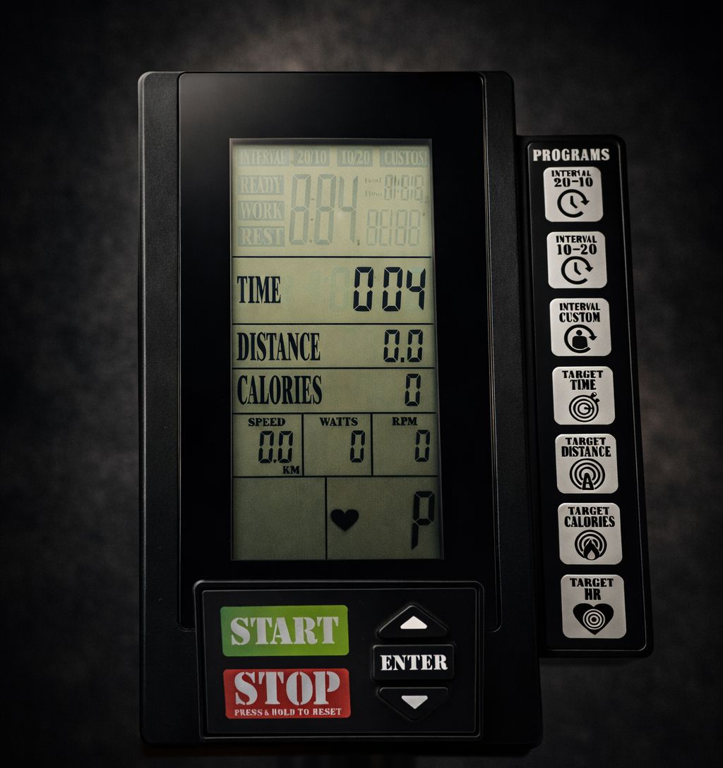 1. LCD ekran sa 7 programa treninga. 20/10, 20/30 intervale, custom intervale, targetiranje distance, vremena i visine srčane frekvencije i potrošnje kalorija.